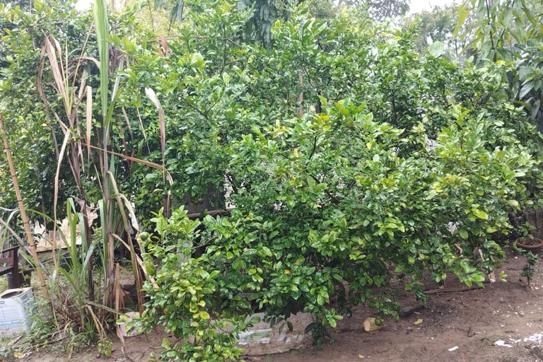 Outro ponto que torna essa chácara especial é que ela já começou a se transformar em um pequeno pomar. Diferente de muitos terrenos que são apenas terra limpa, aqui já existem vários pés de frutas plantados e alguns já produzindo, o que traz vida ao lugar e cria um ambiente mais agradável desde o primeiro dia.